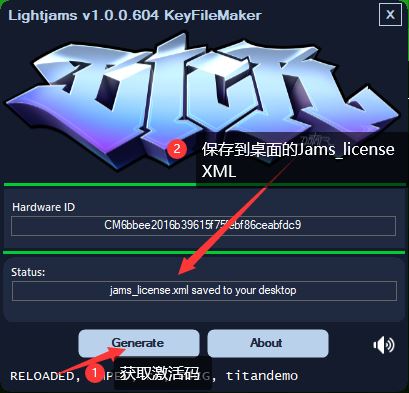 6.点击generate获取注册码,注册码 jams_license.xml 将直接显示在桌面,如图